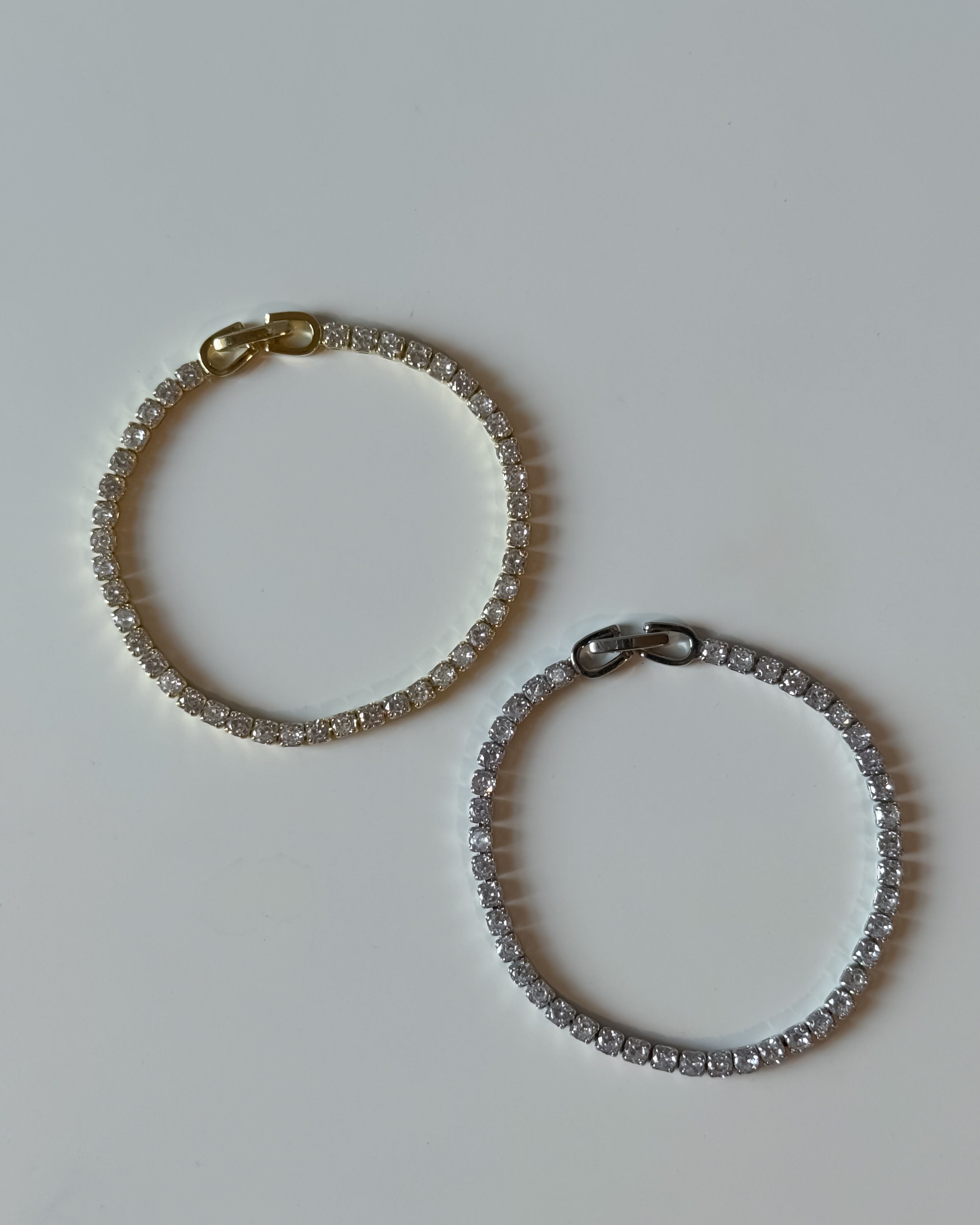 まばゆいほどの輝きを放つ、ジルコニアが贅沢に並んだテニスブレスレット。