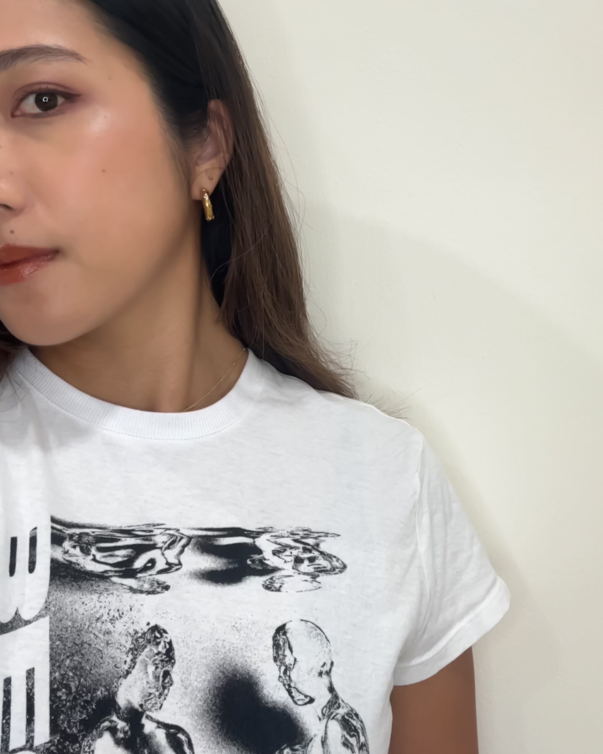 ぷくっとしたボリューム感が特徴のフープピアスに、